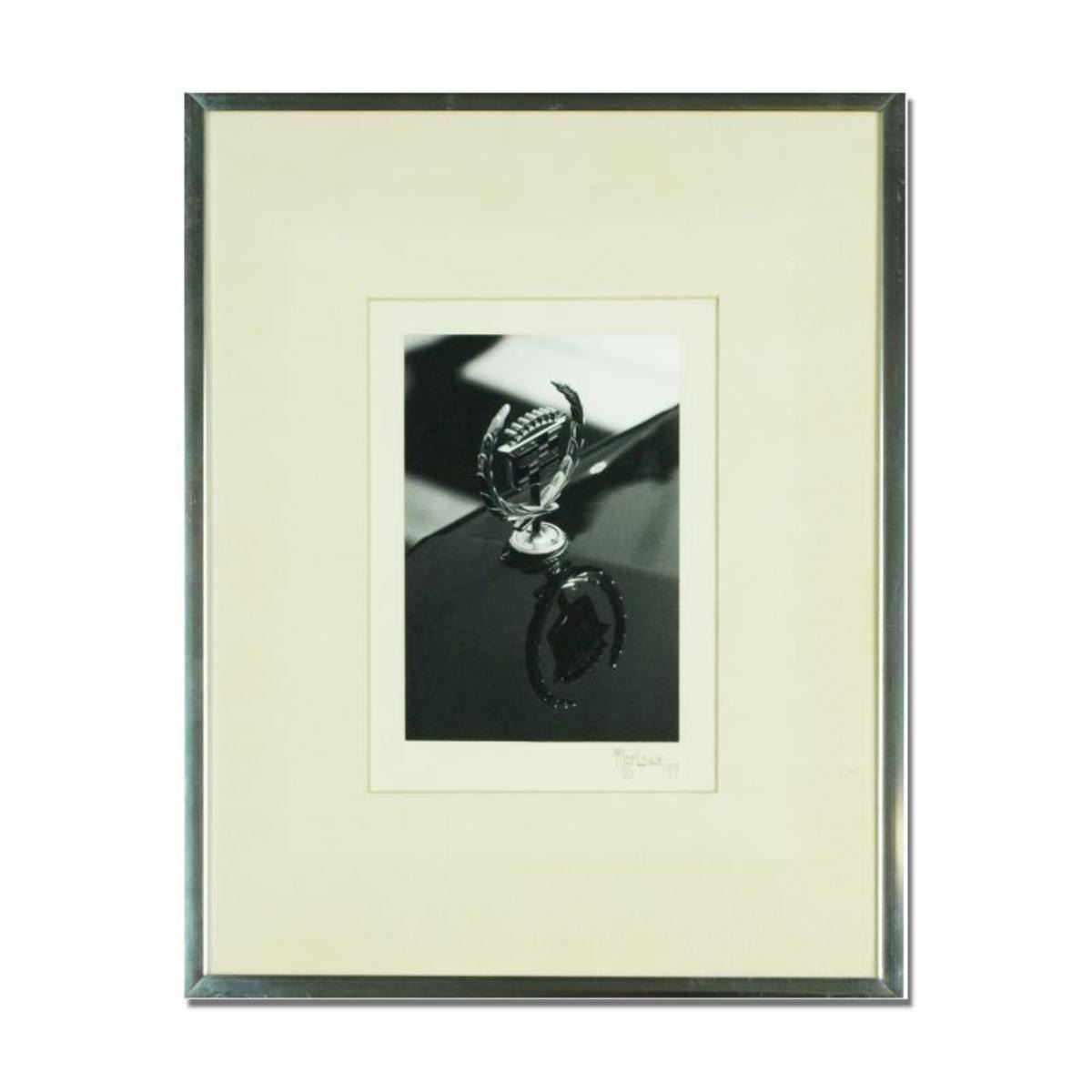 "Cadillac Reflection" is a framed fine art photograph by George Marlowe. The photo negative of this piece has been destroyed; this is the single print produced. The piece is hand signed and accompanied by a certificate of authenticity. Measures approximately 14.5x11.5" (frame), 7.5x5.5" (image). Reference #: 229944