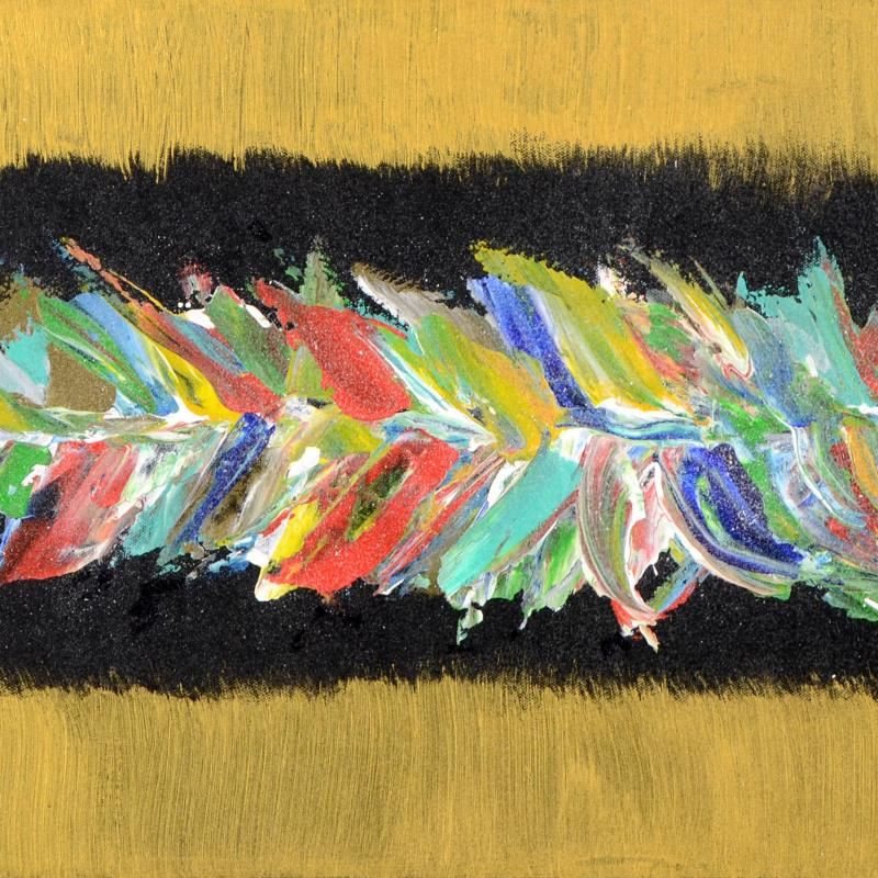 "Flamenco" is a hand signed original acrylic painting on canvas by George Marlowe. This piece comes gallery wrapped and includes a Certificate of Authenticity. Measures approx. 38" x 18".