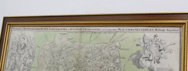 Colored engraving. George Matthaus Seutter (1678-1757). Approx. 23" H x 26" W framed. (6090)