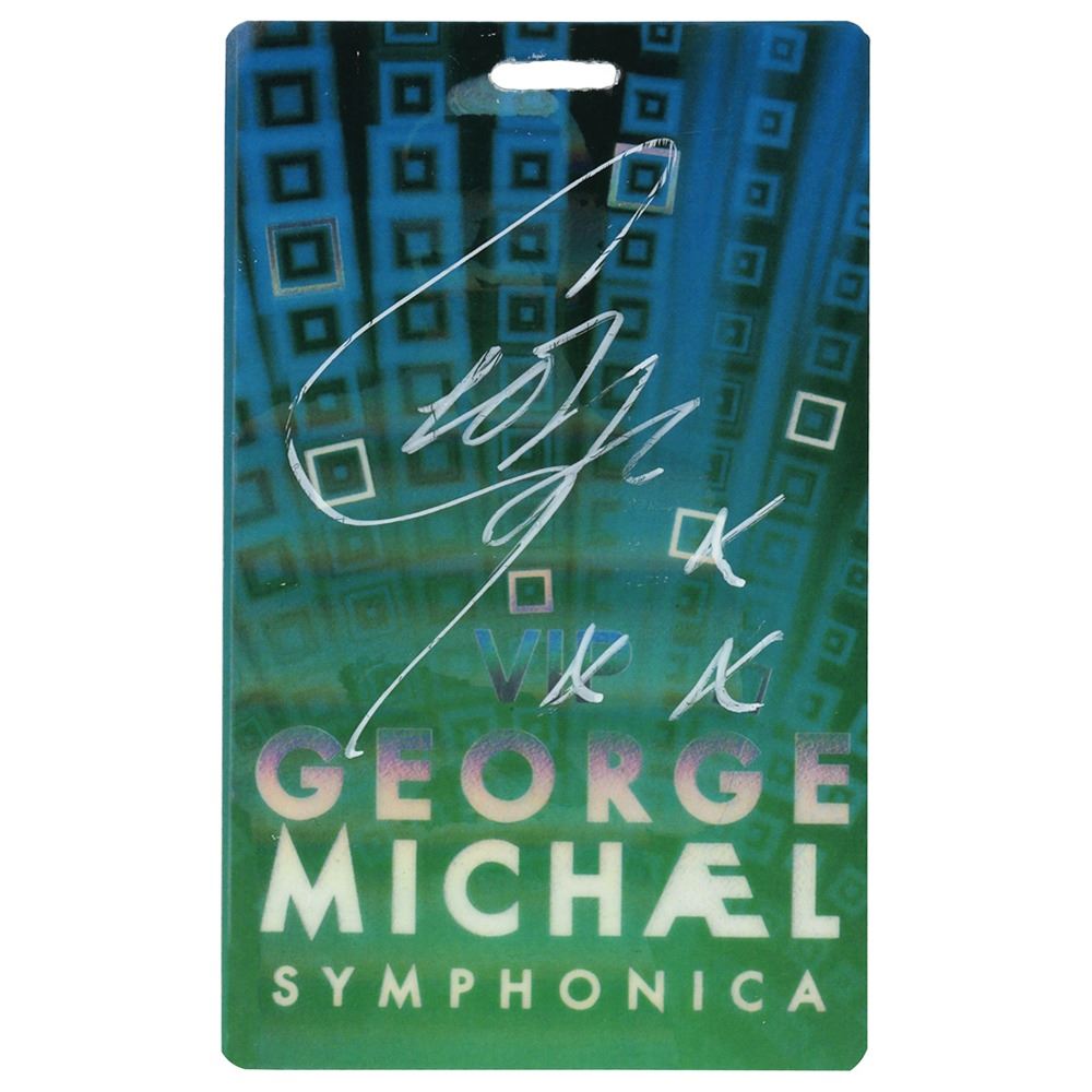 Desirable VIP backstage pass for George Michael’s Symphonica Tour, an orchestral concert tour—and the last of Michael’s career—that began in August 2011 and ended in October 2012, 2.75 x 4.5, signed on the front in white ink, “George, xxx.†In very fine condition.
