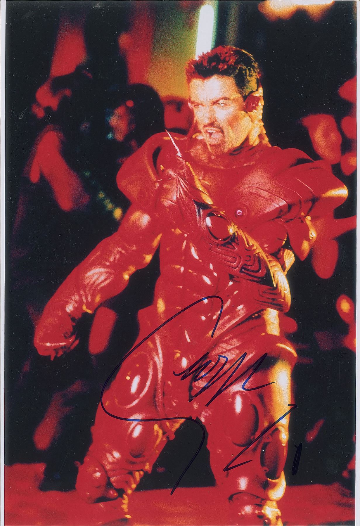 Color glossy 8.25 x 12 photo of Michael during the making of his music video for the 2004 single 'Freeek!,' signed in blue felt tip. In fine condition.
