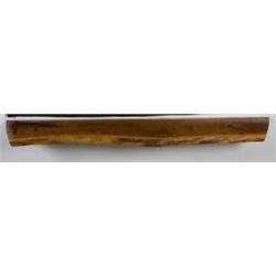 Derek Ostergard asked Nakashima to create this shelf for the entrance to the traveling retrospective. It was prominently displayed in each location of the exhibition. The board is exceptionally thick and is masterly finished and detailed. Exhibited: George Nakashima: Full Circle, American Craft Museum, 1989