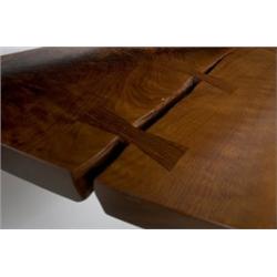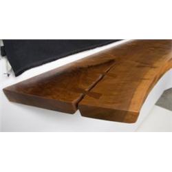 American Black Walnut and Rosewood<BR>Nakashima Studio, designed 1988<BR>Specially designed and executed for the “Full Circle” exhibition, organized by the American Craft Museum the first major retrospective of the work of George Nakashima. 90”l x 16”d x 2.5”h