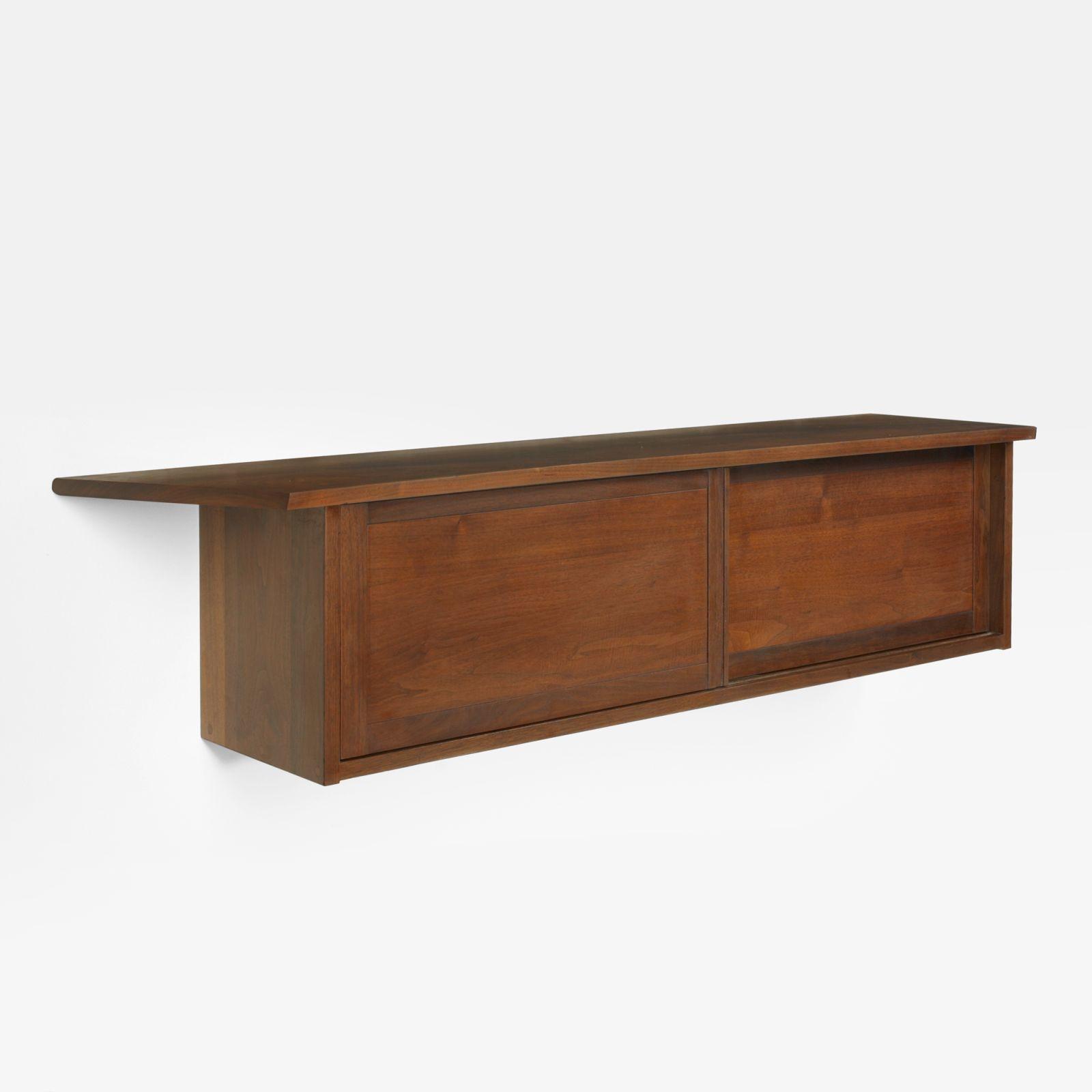 Cabinet features two sliding doors concealing two compartments with two adjustable shelves.