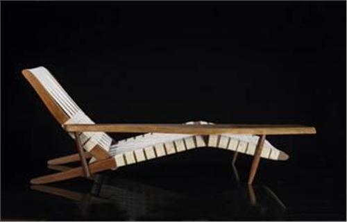 George Nakashima<BR>Long chair<BR>USA, 1951<BR>American black walnut, canvas<BR>70"w x 35"d x 27"h<BR>In this early examples, the symmetrical pattern of the canvas strapping stands in contrast to the free form edge of the armrest.<BR>Literature: George Nakashima: Full Circle, Ostergard, ppg. 150-151<BR>Provenance: Private collection, Maine<BR><BR><BR><BR>