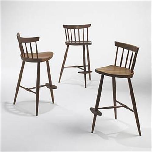 George Nakashima Mira stools, set of three USA, c. 1952 American black walnut 22 w x 19 d x 37 h inches Literature: Nature Form & Spirit: The Life and Legacy of George Nakashima, Nakashima, pg. 94