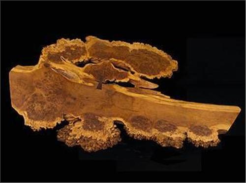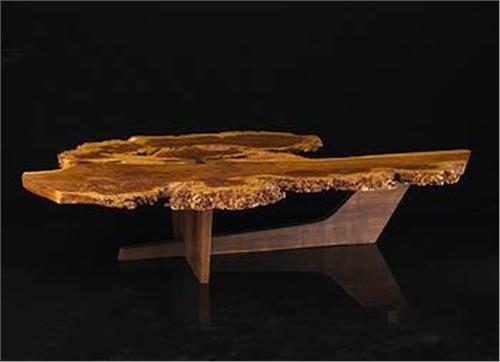 George Nakashima<BR>coffee table<BR>USA, 1973<BR>white oak burl, American black walnut, butternut<BR>71"w x 40"d x 13.75"h<BR>An exceptionally rare cut of wood with numerous burls, fissures and free edges forms the top of this table.<BR>Literature: Nature Form & Spirit: The Life and Legacy of George Nakashima, Nakashima, pg. 251<BR>Provenance: Purchased directly from the artist<BR>Baird family<BR><BR><BR>