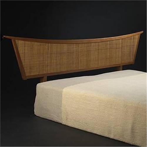 George Nakashima<BR>headboard, model #X220-5-W<BR>Widdicomb<BR>USA, 1959<BR>walnut, cane<BR>109"w x 38"h<BR>Literature: Widdicomb Manufacturer's catalog, pg. 14<BR><BR><BR><BR><BR>