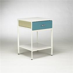 George Nelson & Associates Steel Frame end table, model #4052B Herman Miller USA, 1955 lacquered wood, laminate, lacquered and chrome steel 16.75"w x 18.5"d x 25"h Signed with a factory label.