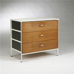 George Nelson & Associates Steelframe cabinet, model #4011 Herman Miller USA, c. 1955 walnut, enameled metal, laminate 33.75"w x 18.5"d x 29.5"h