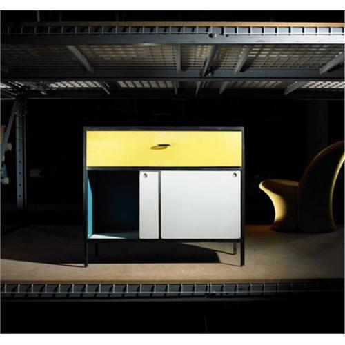 33.25 w x 18 d x 29.5 h inches<BR><BR>Condition: Small losses to corners on doors with surface abrasions to right short side and shallow indentations to drawer. Minor soiling to top surface. Overall fine vintage condition.