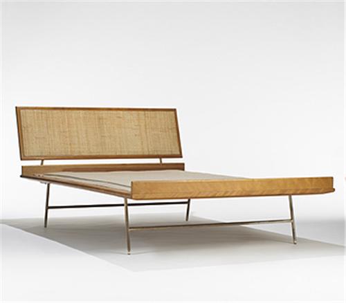 birch, caning, enameled metal