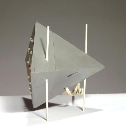 7h x 10w x 6d inches, painted metal and aluminum, Howard Miller designed in 1953, retains sticker, in original vintage very good condition