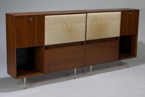 <b>Description: </b>"Thin-Edge" custom headboard ; Herman Miller, designed 1955