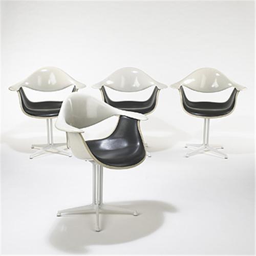 George Nelson and Associates DAF dining chairs, set of four Fehlbaum AG for Herman Miller USA/Germany, 1960s plastic, enameled metal, vinyl 29"w x 21"d x 32.5"h