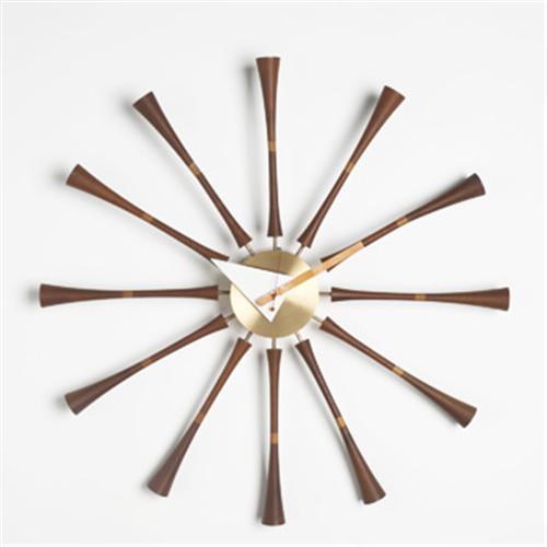 George Nelson and Associates Spool wall clock, model #2239 Howard Miller USA, 1958 walnut, birch, brass, enameled metal 23"dia Signed with decal label.
