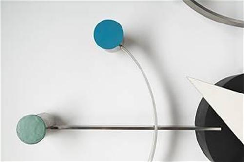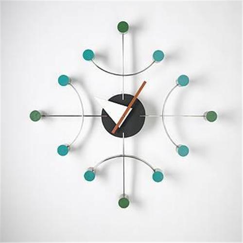 George Nelson and Associates<BR>custom wall clock, model #2237<BR>Howard Miller<BR>USA, c. 1957<BR>enameled metal, stainless steel<BR>42.25"w x 5"d x 42.5"h<BR>This variation of model #2237 is twice the size of the production version and custom made for a commercial interior by Howard Miller. A rare and extraordinary clock from the Nelson office.<BR><BR><BR><BR><BR>