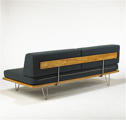 George Nelson and Associates daybed, model #5088 Herman Miller USA, c. 1950 upholstery, birch, aluminum 75.5"w x 34"d x 27.75"h Literature: The Herman Miller Collection, Nelson, pg. 54