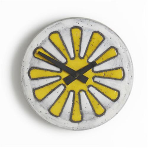 George Nelson and Associates wall clock Howard Miller/Meridian USA, c. 1958 glazed stoneware, enameled metal 11"dia Signed with paper label.