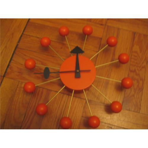 George Nelson by Vitra-Starburst Clock, Classic 1960's style. Bright orange w/ flexible hands. Battery operated.