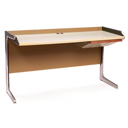 George Nelson low Action Office desk, by Herman Miller, 1960s, aluminum frame with painted panels, one drawer, two outlets to desktop, original finish, marked with round metal tag, 49.5"w x 19.5"d x 25.5"h, very good condition