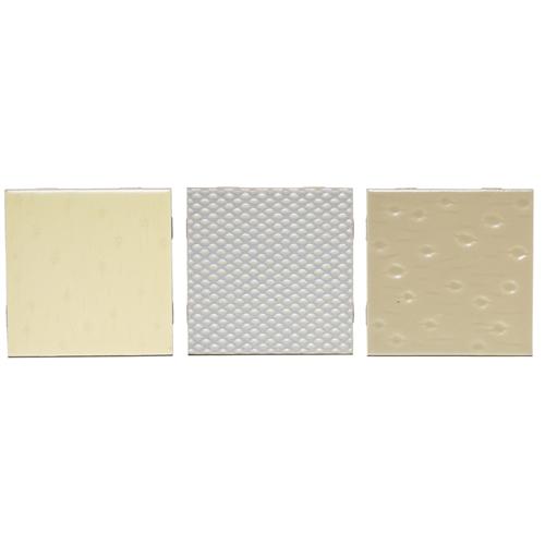 George Nelson tiles, three, by Pomona, USA, textured glazed ceramic, one each of three different patterns, all fully marked on back, 4.25"sq., mint condition