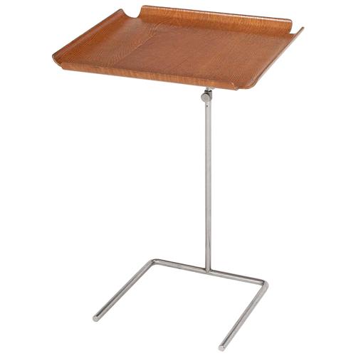 George Nelson tray table, by Herman Miller, molded ash plywood tray top over a chromed steel base, height adjustable, original finish, unmarked,15in.w x 15in.d x 20in.h, excellent condition