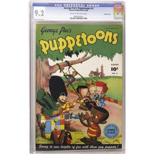 <B>George Pal's Puppetoons #4 Crowley Copy pedigree (Fawcett, 1946) CGC NM- 9.2 Cream to off-white pages.</B></I> Currently, the only CGC-graded copy. Overstreet 2006 NM- 9.2 value = $170. CGC census 10/06: 1 in 9.2, none higher.<BR><BR><b>Shipping:</b> Slabbed Comic (<a target="_blank" href="http://www.heritageauctions.com/common/shipping.php">view shipping information</a>)