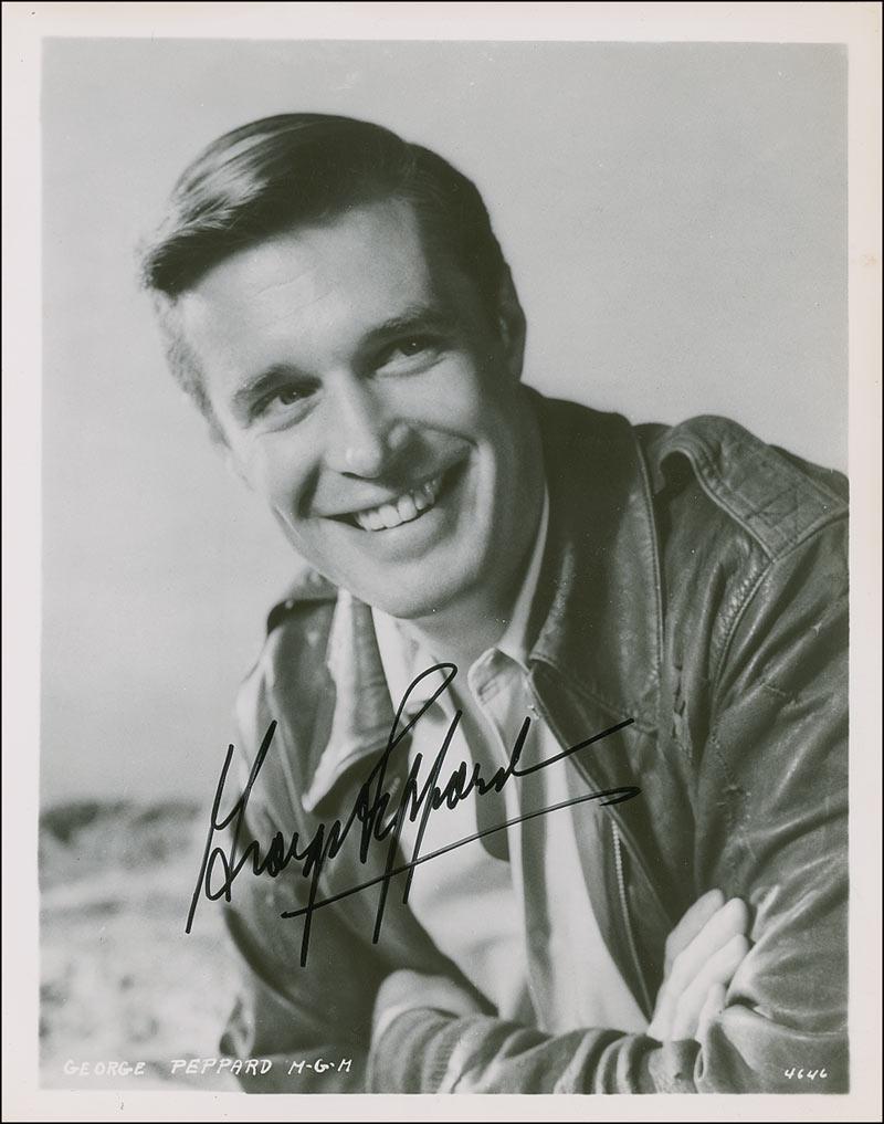 Glossy 8 x 10 photo of the actor early in his career, signed in black felt tip “George Peppard.” In fine condition.