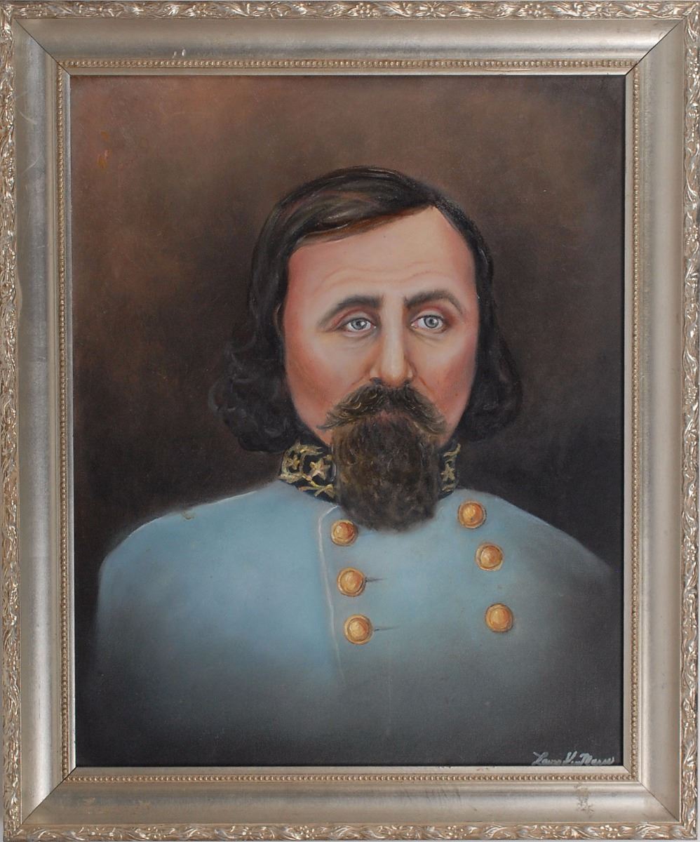 Original painting of George Pickett, oil on canvas, 15.5 x 19.5, showing the famed Confederate general in uniform. Signed in the lower right by the artist. Framed to an overall size of 19.5 x 23.5. In fine condition.