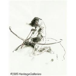 George Pratt - Indian with Bow Drawing Original Art ( George Pratt - Indian with Bow Drawing Origina