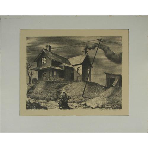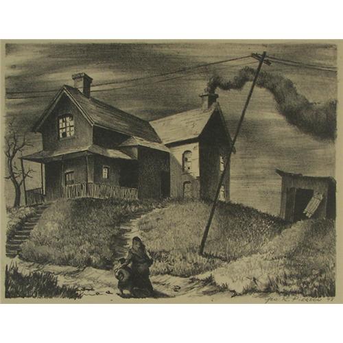 George R. Pierson, Lithograph, Mother & Child Walking Home, 1948, image size 6 7/8" x 8 7/8", pencil signed