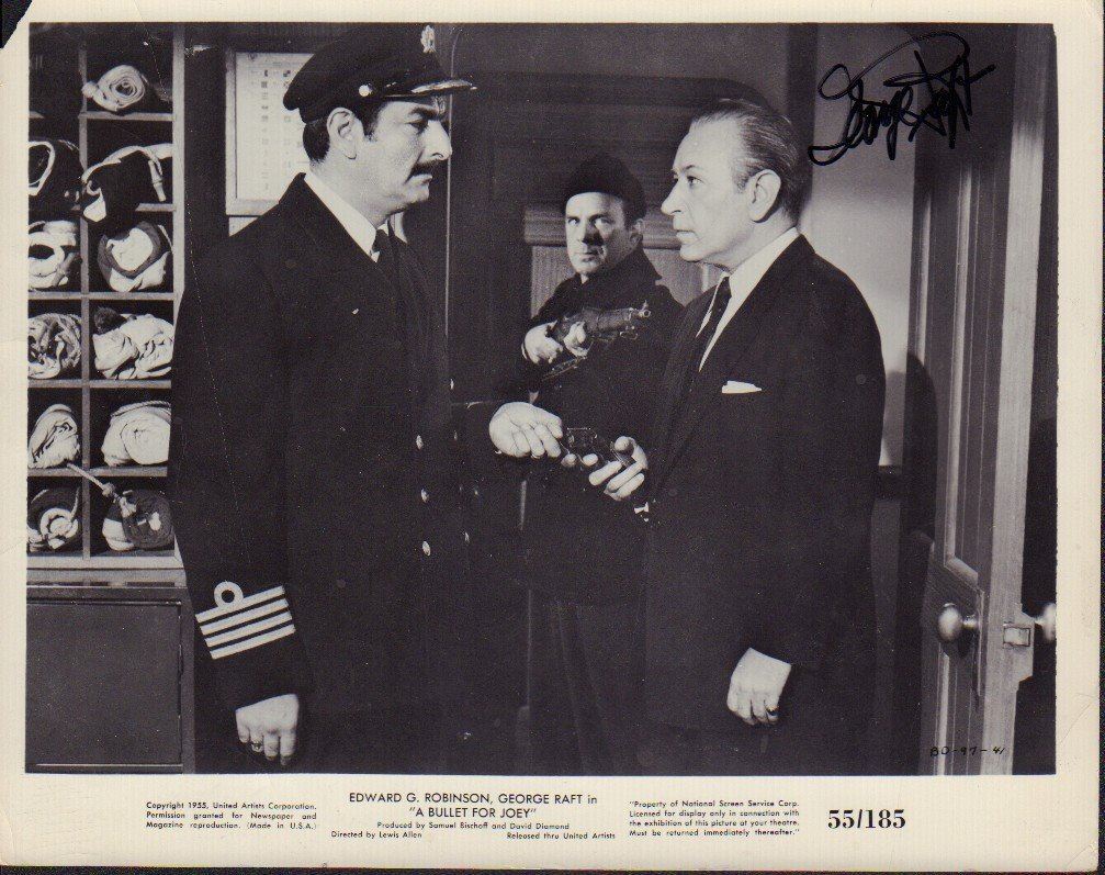 A vintage original still from "Bullet for Joey" with crease on left side not affecting signed area by the famed gangster actor