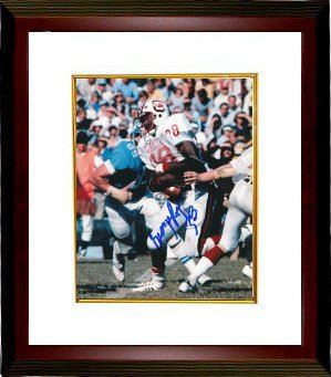 During George Rogers' junior campaign he rushed for 1,681 yards. After that season, Rogers was given Second Team All-America Honors by the Associated Press, National Editorial Alliance, United Press International, American Football Coaches, and Football News. In 1980, the stage was set when the Gamecocks returned plenty of talent, which was headlined by senior and Heisman candidate Rogers. While South Carolina's 8-3 record was good, Rogers' final season was better. His 1,781 yards was the best in the nation and earned him a spot as a finalist for the Heisman Trophy. George Rogers has hand autographed this South Carolina Gamecocks 8x10 Photo. Custom White Mat and Premium Mahogany Color Framed as shown. Certificate of Authenticity from Athlon Sports.