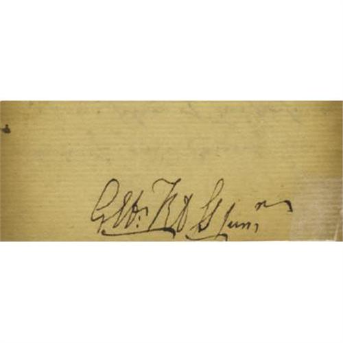 <B>George Ross Endorsement Signed "</B></I><B><I>Geo Ross Junr.</B></I></B></I><B>" </B></I> Signed on the docket of a manuscript document, one page, 7.5" x 12", Cumberland County, Pennsylvania, January, 1775, a legal document concerning a debt. Separated folds reinforced with archival tissue, toned at folds, else very good. A nice example of the Signer from Pennsylvania.<BR><BR><BR><b>Shipping:</b> Flat Material, Small (<a target="_blank" href="http://www.heritageauctions.com/common/shipping.php">view shipping information</a>)