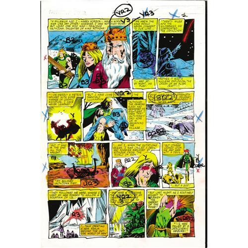 <B>George Roussos - Fantastic Four #225 Color Guide, Group of 22 (Marvel, 1980).</B></I> Bill Sienkiewicz and Pablo Marcos illustrated the Fantastic Four saga of "The Blind God's Tears," while George Roussos provided the coloring. This lot features the color guides from <B>Fantastic Four</B></I> #225. The art was reduced to 6" x 9" (image area) photostated pages or "silverprints." Each page was then hand colored by Roussos, with numbered color indications throughout. Aside from some minor overall wear, these color guide pages are in Very Good condition.