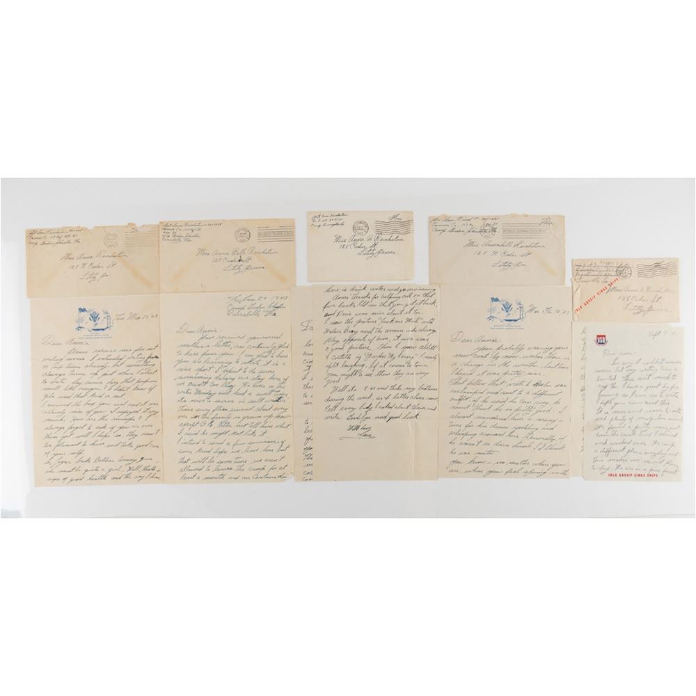 Additional letters, documents, and telegrams include: Reichstein's March 14, 1941 draft notice; a letter to Viola from a general on White House letterhead advising that the War Department had been notified to act on her request; a November 26, 1943 letter from Adjutant and Maj. Gen. James Alexander Ulio advising of Sam's death and apologizing for the delay in the notification; a carbon copy of a letter December 5, 1943 letter sent via Gen. Mark Clark (no doubt instigated by Patton) seeking information on Reichstein; a December 14, 1943, letter from his first sergeant ("Sam was wounded in action and sent to a hospital. I haven't heard from him since"); a November 7, 1944 letter from his staff sergeant ("I am writing you this letter…because of a promise I made your son Slim, I was his platoon Sgt, and was with him in the end…So I am keeping my promise by writing you…he was the only man that followed me in taking a hill"); plus dozens of letters, documents and telegrams concerning locating the private, support by Jewish and other support groups, his insurance policies, his resting place in Italy, repatriation of his body, pensions, and the final insult—a letter of apology for the man's exclusion from the 180th Infantry 1945 year book. Remarkable, tragic content from one of America's unknown World War II heroes.