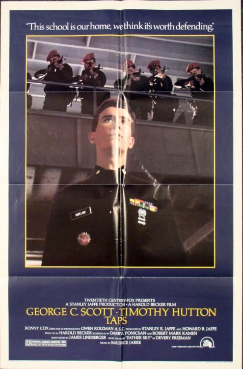 Taps is about military cadets that take extreme measures to insure the future of their * academy when its existence is threatened by local condo developers. * * Medium: Print * on paper Poster sheet size: 26 3/4" x 41". Year: 1981NSS # 810173 * Condition: Good; * has been stored, slight rips throughout * The movie poster is ready * to framed. * *