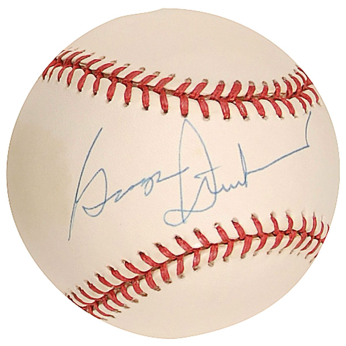 Official Rawlings American League baseball signed in blue ballpoint on a side panel extending to the sweet spot. In fine condition, with some scattered light toning. Accompanied by a letter of authenticity from James Spence.