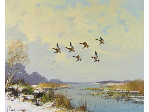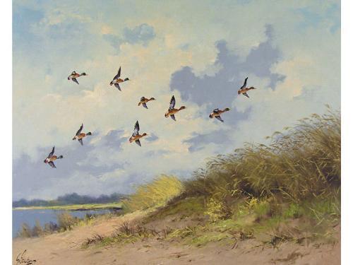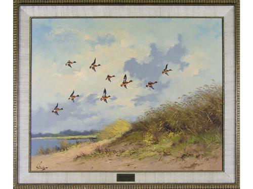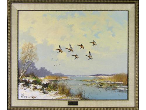 [Canadian, 20th century] AUTUMN MALLARDS; 1962 Oil on canvas 24 x 30 ins. -Signed -together with- MALLARDS, INDIAN SUMMER; 1963 Oil on canvas 24 x 30 ins. -Signed LOT OF TWO