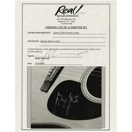 <B>George Strait Signed Guitar.</B></I> A natural finish Copley CA20 acoustic guitar with George Strait's logo on the body, signed on the pick guard by the Country star in silver felt tip. In Excellent condition. <I> Accompanied by a COA from Roger Epperson Authentication LTD.</B></I><BR><BR><b>Shipping:</b> Musical Instruments, Large (<a target="_blank" href="http://www.heritageauctions.com/common/shipping.php">view shipping information</a>)