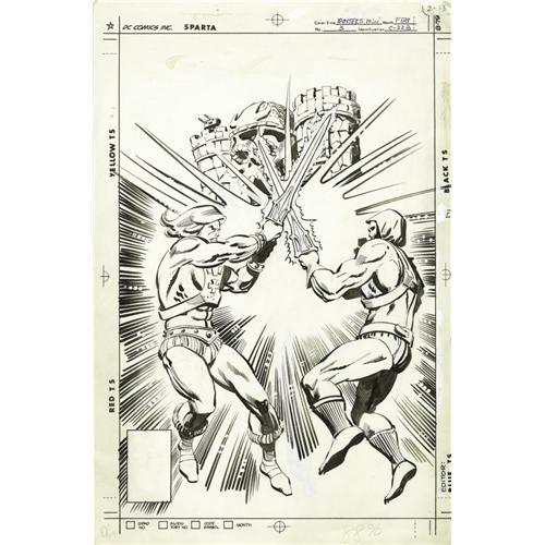 <B>George Tuska and Klaus Janson - Masters of the Universe #3 Cover Original Art (DC, 1982).</B></I> It's He-Man vs. Skeletor in this early-80s DC cover from the comic book modeled after the popular cartoon series. Inks by a pre-<B>Dark Knight Returns</B></I> Klaus Janson. The image area measures 10" x 15". Some light soiling along the edges, and along the top; otherwise the condition is Very Good. <BR><BR><B>Important notice:</B> Heritage usually auctions material at the rate of 200-250 lots per hour. On some occasions eBay Live bid software or the Internet may not be able to keep up with the pace of the auction. We recommend placing a realistic absentee bid now as insurance to avoid disappointment. Occasionally the auctioneer may eliminate or reject an eBay Live bid, and the auctioneer may also reopen a lot after the close of the eBay live bidding (usually because we missed an audience bid), and may reject your bid even if it shows you as the winning bidder. By bidding via eBay Live, you agree that Heritage may award the lot to another bidder at its sole discretion under the circumstances described above or any other reasonable circumstances. Since eBay bids are not shown to us until we open the lot on the floor, we treat those bids just like floor bids. In most cases the floor responds before the eBay bid is presented to us, due to Internet lag time, so for consistency we have made it a policy that floor bids are always considered first over tie eBay live bids. Also please note that all Heritage lots purchased through eBay Live carry a 22.5% Buyer's Premium. Please make sure you read the Terms and Conditions before you bid. This lot is being auctioned in conjunction with a live floor auction by Heritage Auction Galleries. All final auction and invoice information will be supplied by Heritage Auction Galleries, and all other information should be considered preliminary. Lot:41001 <BR><BR><B>Winning Notification and Billing:</B> After the FINAL session in this auction is complete, Heritage will send e-mail and snail mail invoices. This process normally takes several days. All final auction and invoice information will be supplied by Heritage Auction Galleries, and all other information should be considered preliminary. <BR><BR>This auction will be conducted on a live auction floor and over the Internet through eBay Live. If you choose to place an absentee bid, please take a moment to <font color='#0000ff'><u><a href='http://pages.ebay.com/liveauctions/help/before/laabsentee.html'>learn how eBay Live absentee bidding works</a></u></font><font color='#000000'>