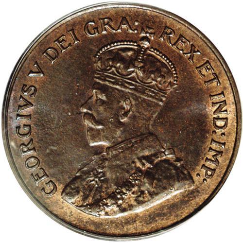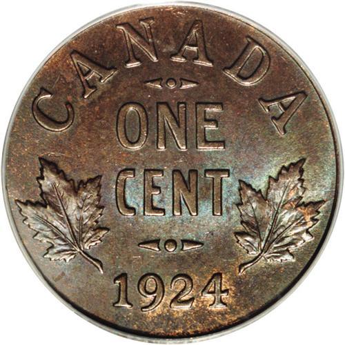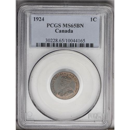 <B>George V 1 Cent 1924,</B></I> KM28, MS65BN PCGS, Super chocolate brown example of this semi-key date with just a hint of original mint luster remaining.