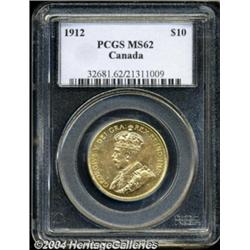 George V $10 1912, KM27, MS62 PCGS.From the Chet Krause Collection. Important notice: Heritage usually auctions material at the rate of 200-250 lots per hour. On some occasions eBay Live bid software or the Internet may not be able to keep up with the pace of the auction. We recommend placing a realistic absentee bid now as insurance to avoid disappointment. Occasionally the auctioneer may eliminate or reject an eBay Live bid, and the auctioneer may also reopen a lot after the close of the eBay live bidding (usually because we missed an audience bid), and may reject your bid even if it shows you as the winning bidder. By bidding via eBay Live, you agree that Heritage may award the lot to another bidder at its sole discretion under the circumstances described above or any other reasonable circumstances. Also please note that all Heritage lots purchased through eBay Live carry a 20% Buyer's Premium. Please make sure you read the Terms and Conditions before you bid.