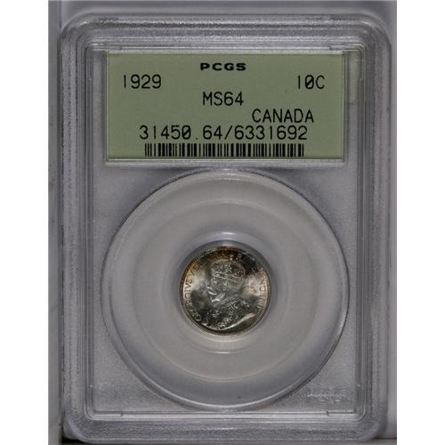 George V 10 Cents 1929, KM23a, MS64 PCGS, an intensely