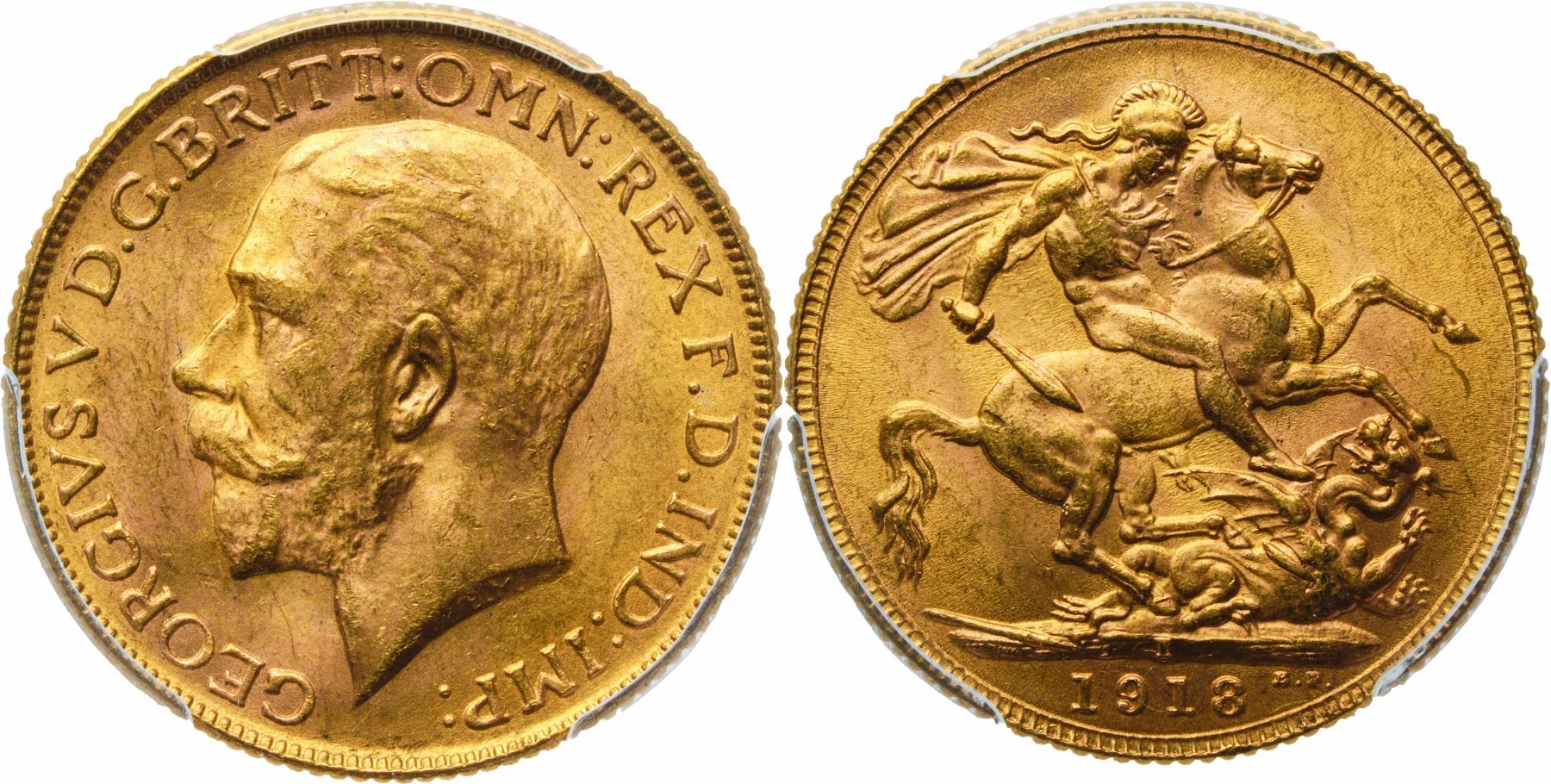 George V 1910-1936 Sovereign, Bombay, 1918 I, AU 7.98 g. 917‰ Ref : Fr. 1609, KM#525A Grad