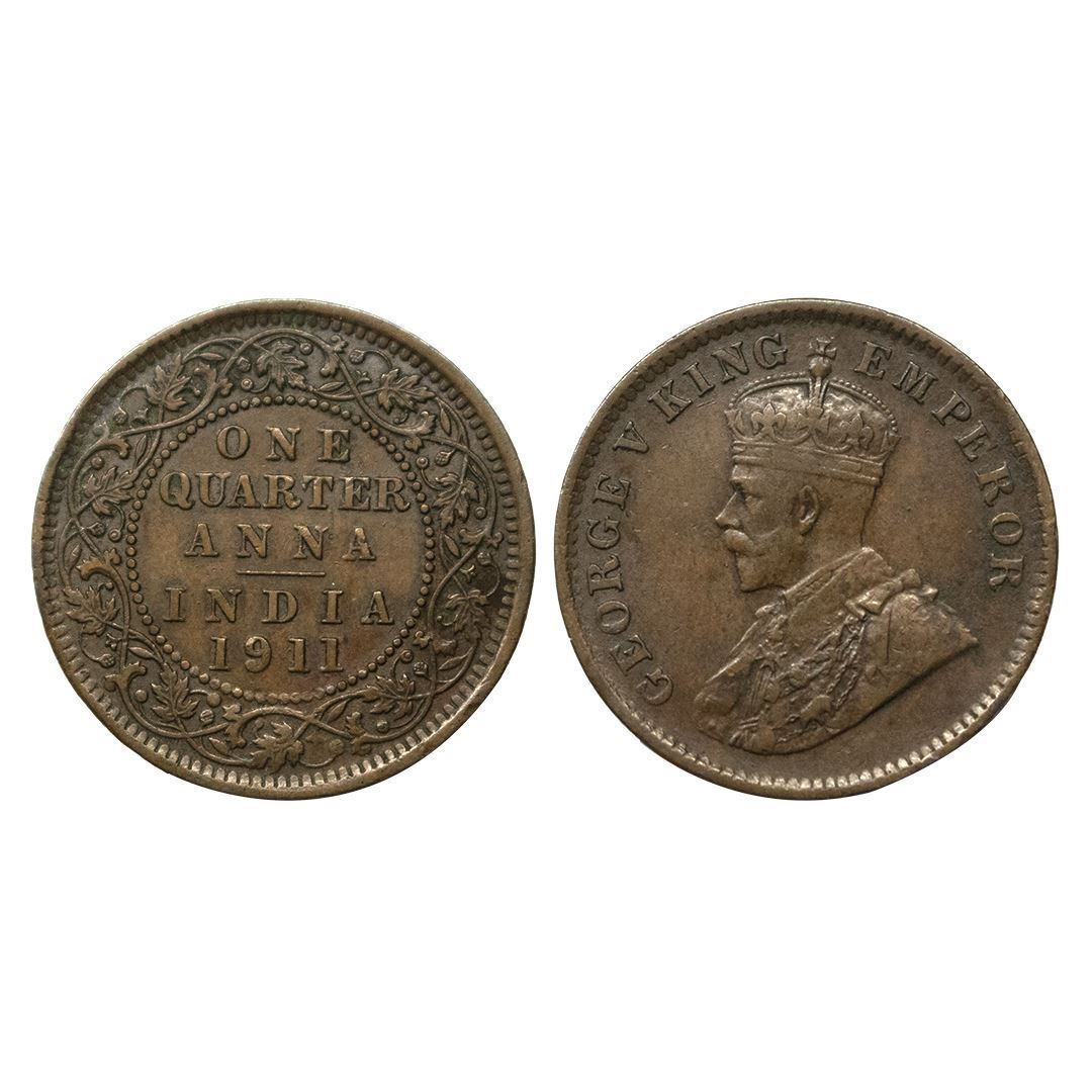 George V, 1911, Quarter Anna, 4.81 gms, Calcutta Mint, very fine, scarce.