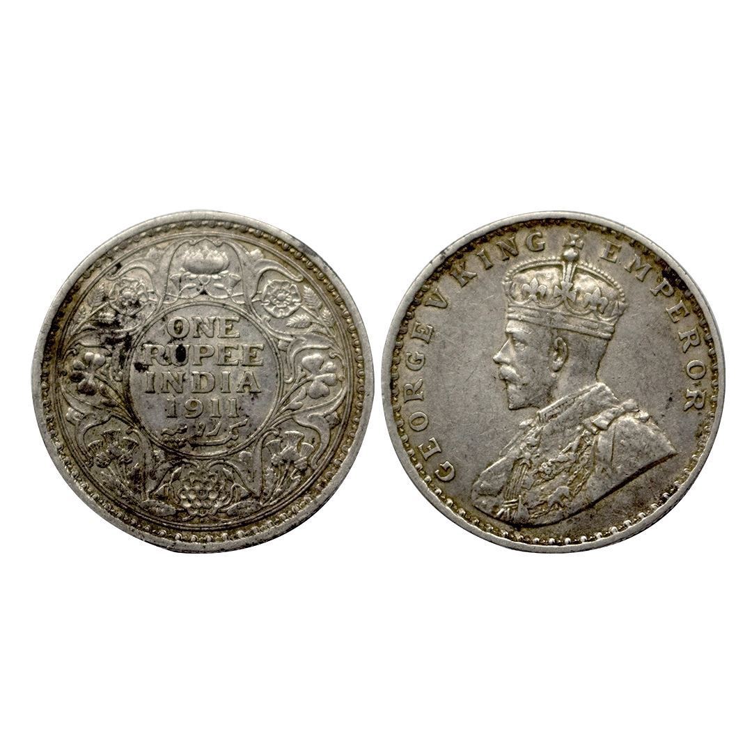 George V, 1911, Silver Rupee, Calcutta Mint.