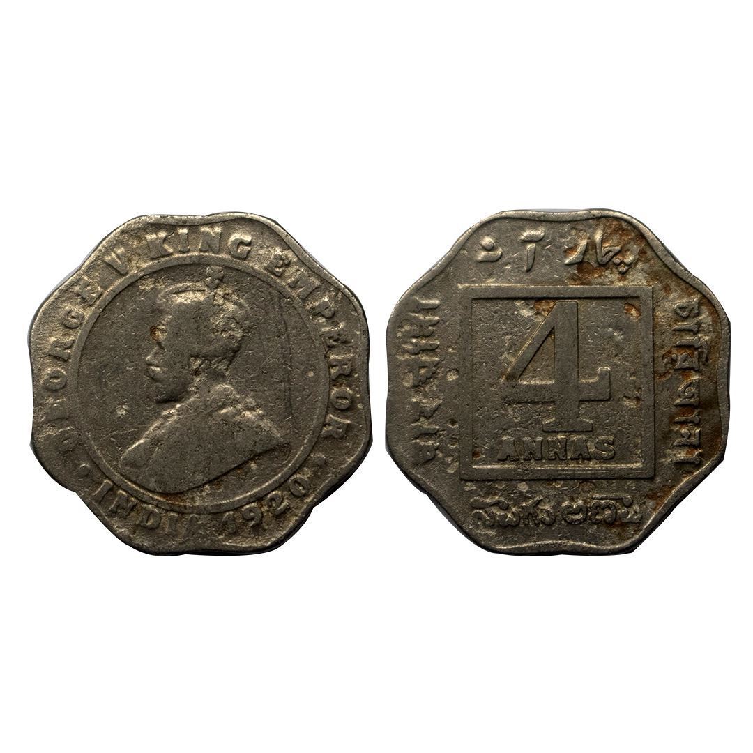 George V, 4 Anna, 6.52 gms, 1920, Calcutta Mint.