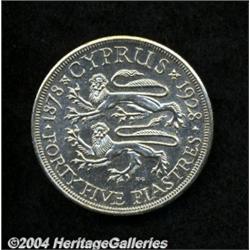 <B>George V 45 Piastres 1928, </B></I>KM19, choice UNC, fully lustrous with just a hint of toning. Struck to commemorate the 50th year of British rule. Very scarce in mint state! <BR><BR><B>Important notice:</B> Heritage usually auctions material at the rate of 200-250 lots per hour. On some occasions eBay Live bid software or the Internet may not be able to keep up with the pace of the auction. We recommend placing a realistic absentee bid now as insurance to avoid disappointment. Occasionally the auctioneer may eliminate or reject an eBay Live bid, and the auctioneer may also reopen a lot after the close of the eBay live bidding (usually because we missed an audience bid), and may reject your bid even if it shows you as the winning bidder. By bidding via eBay Live, you agree that Heritage may award the lot to another bidder at its sole discretion under the circumstances described above or any other reasonable circumstances. Since eBay bids are not shown to us until we open the lot on the floor, we treat those bids just like floor bids. In most cases the floor responds before the eBay bid is presented to us, due to Internet lag time, so for consistency we have made it a policy that floor bids are always considered first over tie eBay live bids. Also please note that all Heritage lots purchased through eBay Live carry a 20% Buyer's Premium. Please make sure you read the Terms and Conditions before you bid.